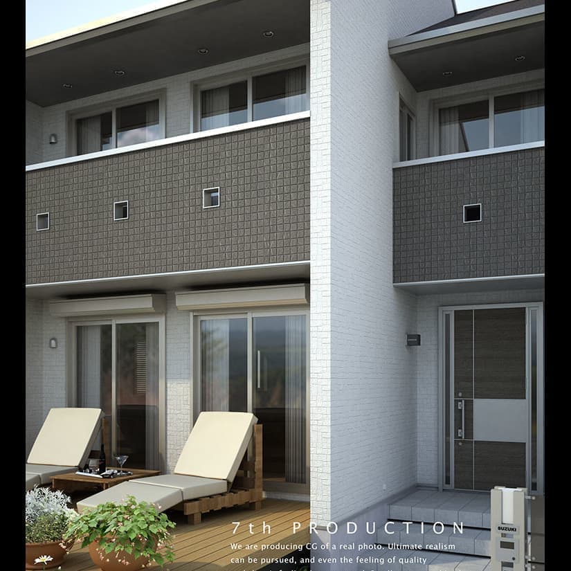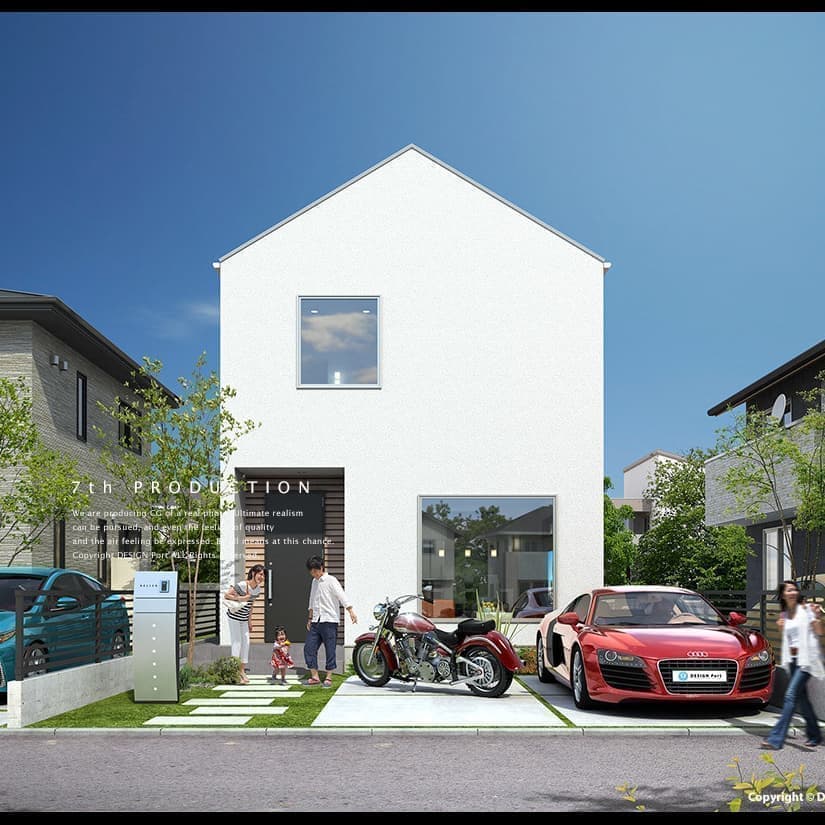 CGパースの魅力はリアルな質感と細かいディテール、多方向からのアングルシミュレーションにより、より完成に近いイメージを表現できる事です。弊社のパースラインアップは、一般住宅を中心として外観パースから内観パースまで幅広く対応しております。