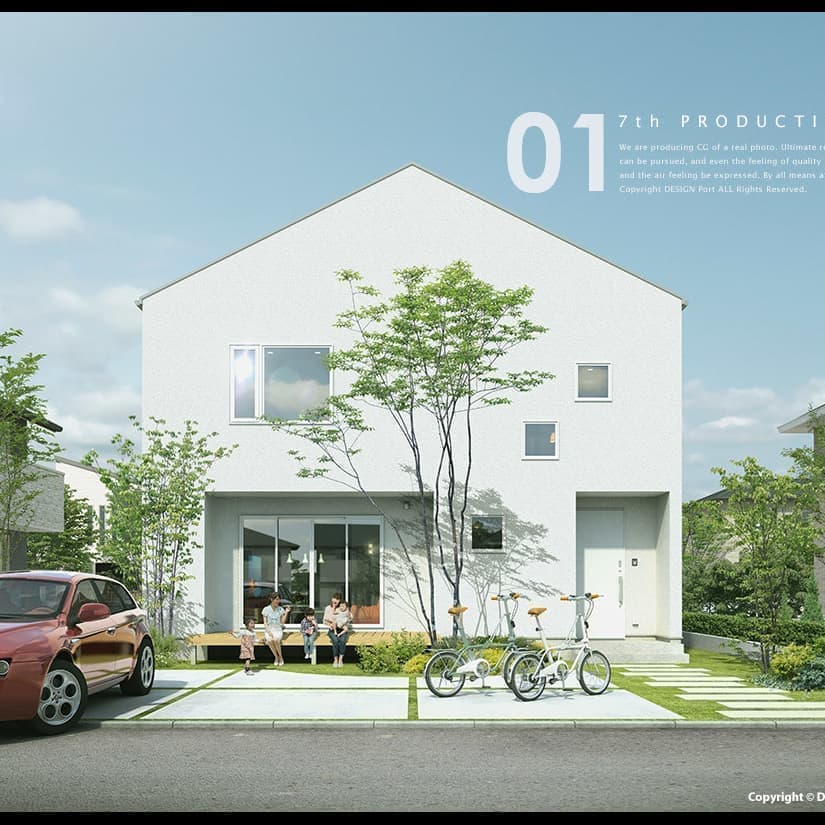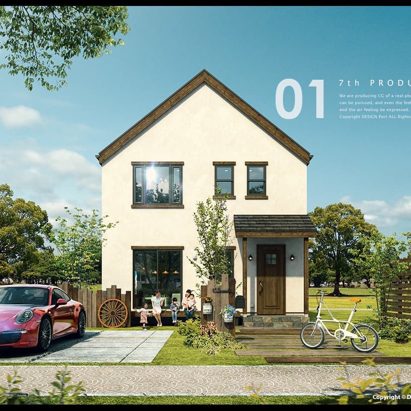 CGパースの魅力はリアルな質感と細かいディテール、多方向からのアングルシミュレーションにより、より完成に近いイメージを表現できる事です。弊社のパースラインアップは、一般住宅を中心として外観パースから内観パースまで幅広く対応しております。